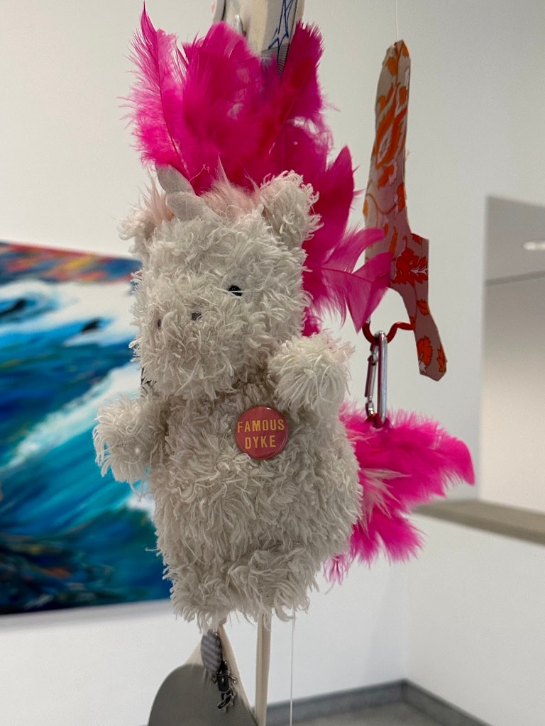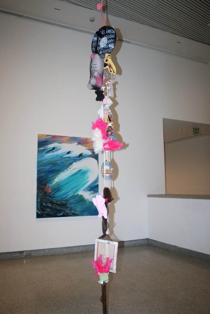 This piece was displayed publicly June 2024 in MCASD’s Axline Court. It centers around the contemporary queer experience, especially how that experience influences relationships both in and out of the community. Suspended entirely using pantyhose and fishing line, this piece holds up surprisingly well. Pretty good, despite it being made using a lighter, piercing needles, and prayers.