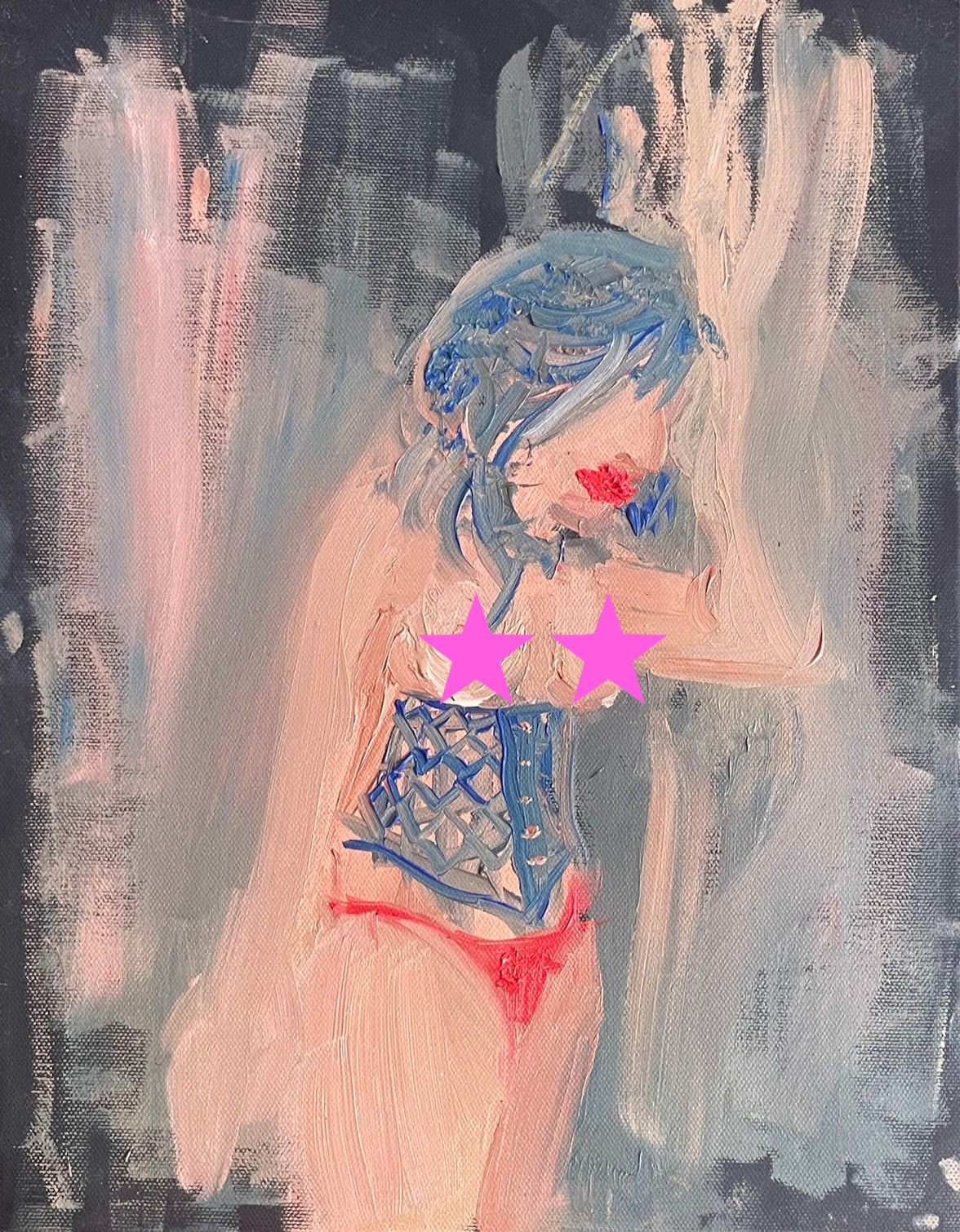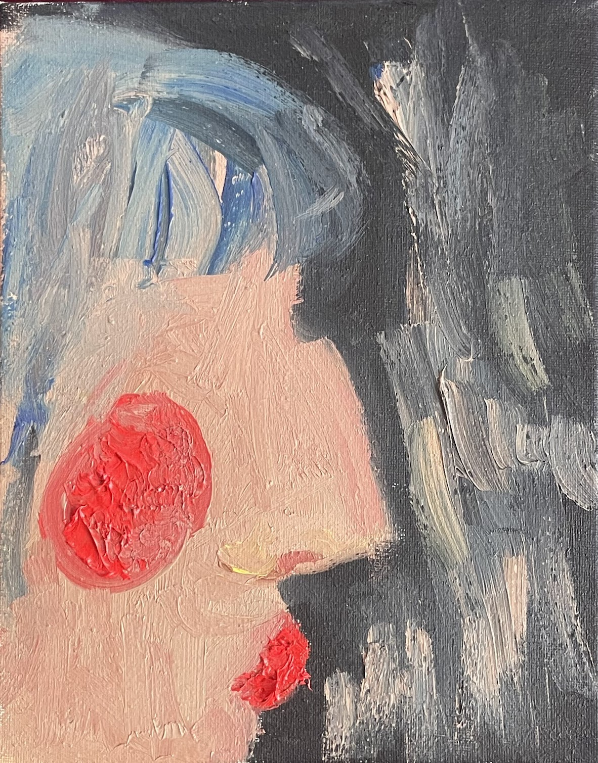 “HE WAS JUST FREDDIE, SLIM AND PLAIN,” OIL ON CANVAS, PIERCING JEWELRY
